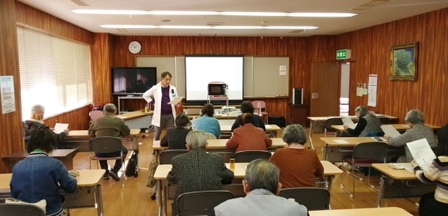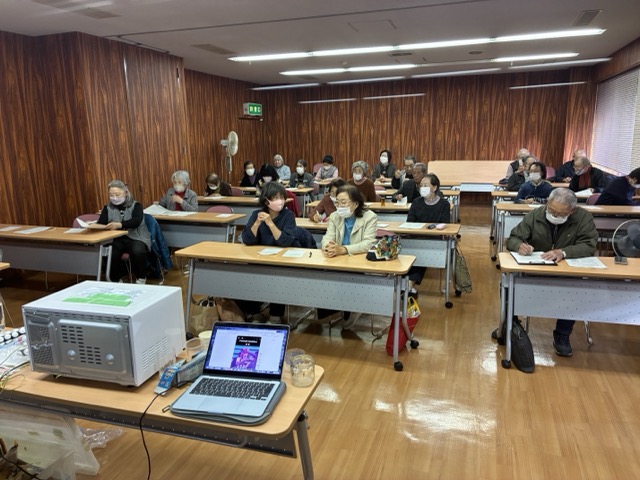 参加者はほとんどが80代のお年寄りで、女性の方がやや多い感じでしたが、とても明るいアットホームな雰囲気で迎えてくださり、和やかに楽しく講座を進めることができました。