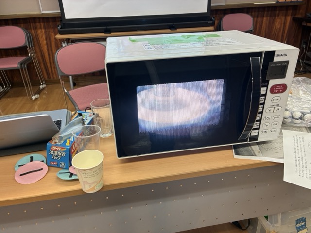 人と未来の科学館サイピアでのサイエンスインストラクター事業を通じて公民館長さんより「高齢者には電子レンジの仕組みや危険性などわかるものが良い」とご依頼をいただき、仮説実験授業の授業書《電子レンジと電磁波》の第1部を中心に実施することにしました。