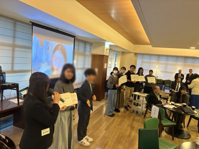 国際塾には岡山県下のこころざしのある中高生40人ほどが年度単位で参加しており、「私やります!」とすぐに手が上がるようなやる気のある学生さんが集まっているのが特徴的です。月に1〜2度、様々な研修や見学を行うほか、前週には卒塾式としてグループによる英語でのプレゼン発表もあり、英語での質疑応答も含め、非常にレベルの高いものでした。
