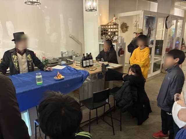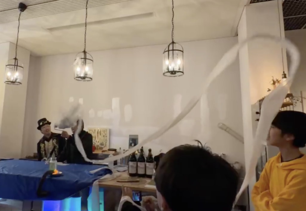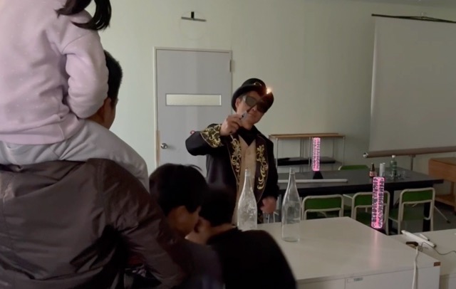 第0回の今回は,中学生2人,小学生1人,幼児,大人を合わせ15人ほどがイノベーションヒルズに集まり,魔法のような実験を見たあと,自分の作りたい魔法を考えて,ディスカッションしながら現実にする方法を考えていきました。