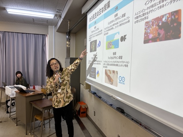 鈴木先生とは,去年の秋に私がたまたま同大学の大学祭の見学に行った時に「これは!」と驚く遊び心にあふれた作品の展示をされていたことからつながりを持たせていただき,今回の講演が実現しました。